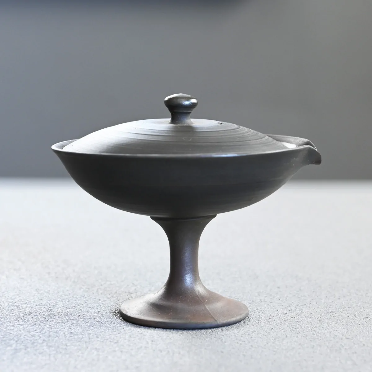 The Gyokko Kodai shiboridashi was worth the investment. This is my fourth shiboridashi from Sazen and found that the function all of these different styles of vessels were excellent. The Gyokko Kodai pours beautifully - fluid steam, right down to the last drop. I tested this vessel with 5 grams and 3 grams of tea and the pour from this shiboridashi flowed easily out of its delicate lip and did not leak from around the lid - even with a marked degree of tilt. The vessel was warm and comfortable to handle when I poured the 60 degrees Celcius (140 deg F) water into the vessel to steep tea. There was no unevenness of heat distribution when you cupped the shiboridashi. The knob on the lid was temperate. The tea leaves distributed itself quite evenly without clumping at the lip during the pour - see image is after 4th steep (3 grams tea) with no manual manipulation of tea distribution after pour. It was evident with 5 grams and 3 grams of tea. The vessel's capacity is stated at 2.7 oz. It yielded 2 oz of brewed tea for me. Aesthetically, it is simplistic elegance and the dark clay gives a very stark contrast against the steeped green tea leaves. The clay is smooth and bowl cups comfortably in the palm and weight of the vessel with and without tea in it does not bear any remarkable or noted changed. The initial tea used for this Gyokko Kodai vessel was a Tencha and the next day a Shuppin Hana. It is definitely excellent for the Senchas styles.