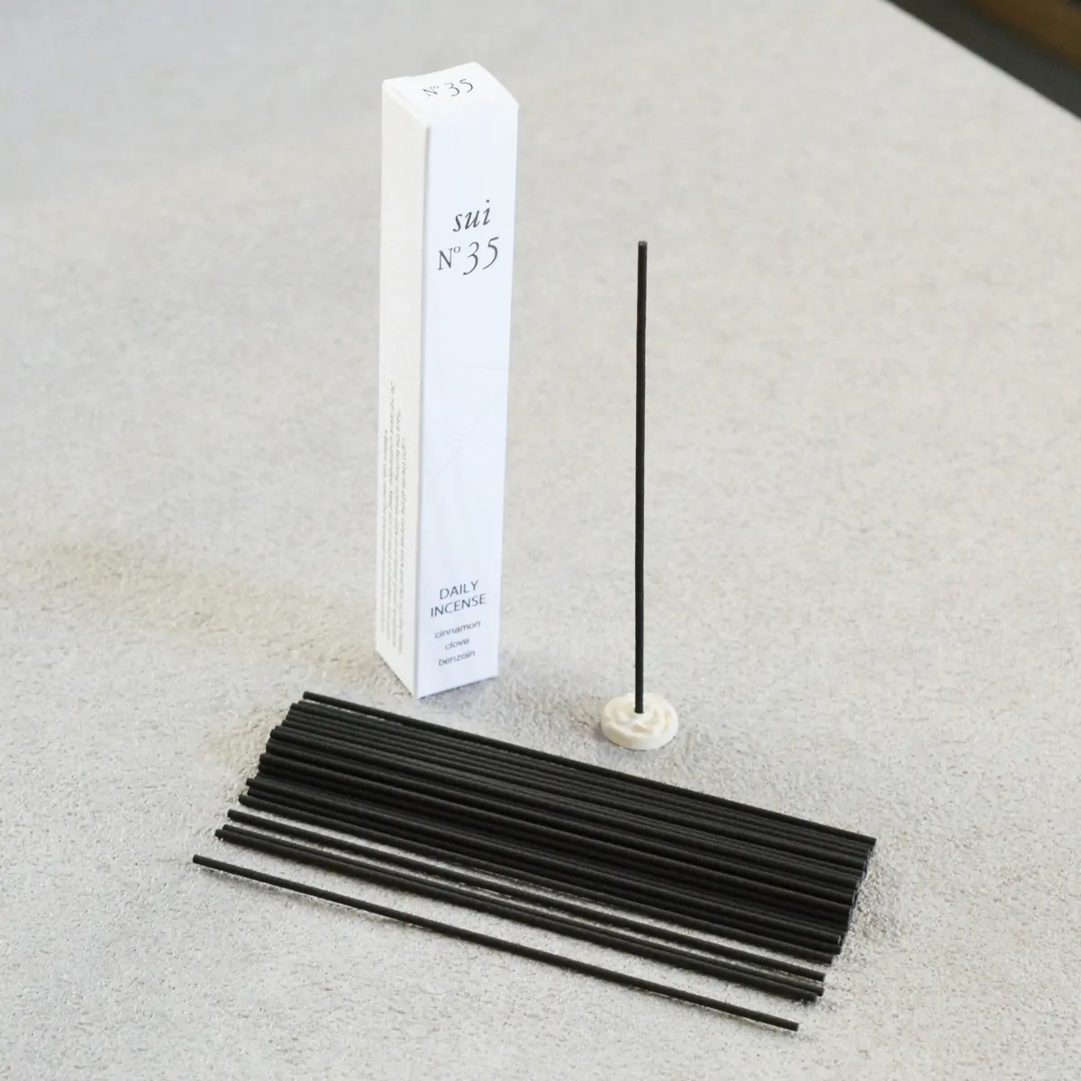 Sui no. 35 is a low-smoke blend featuring cinnamon, clove, and benzoin.