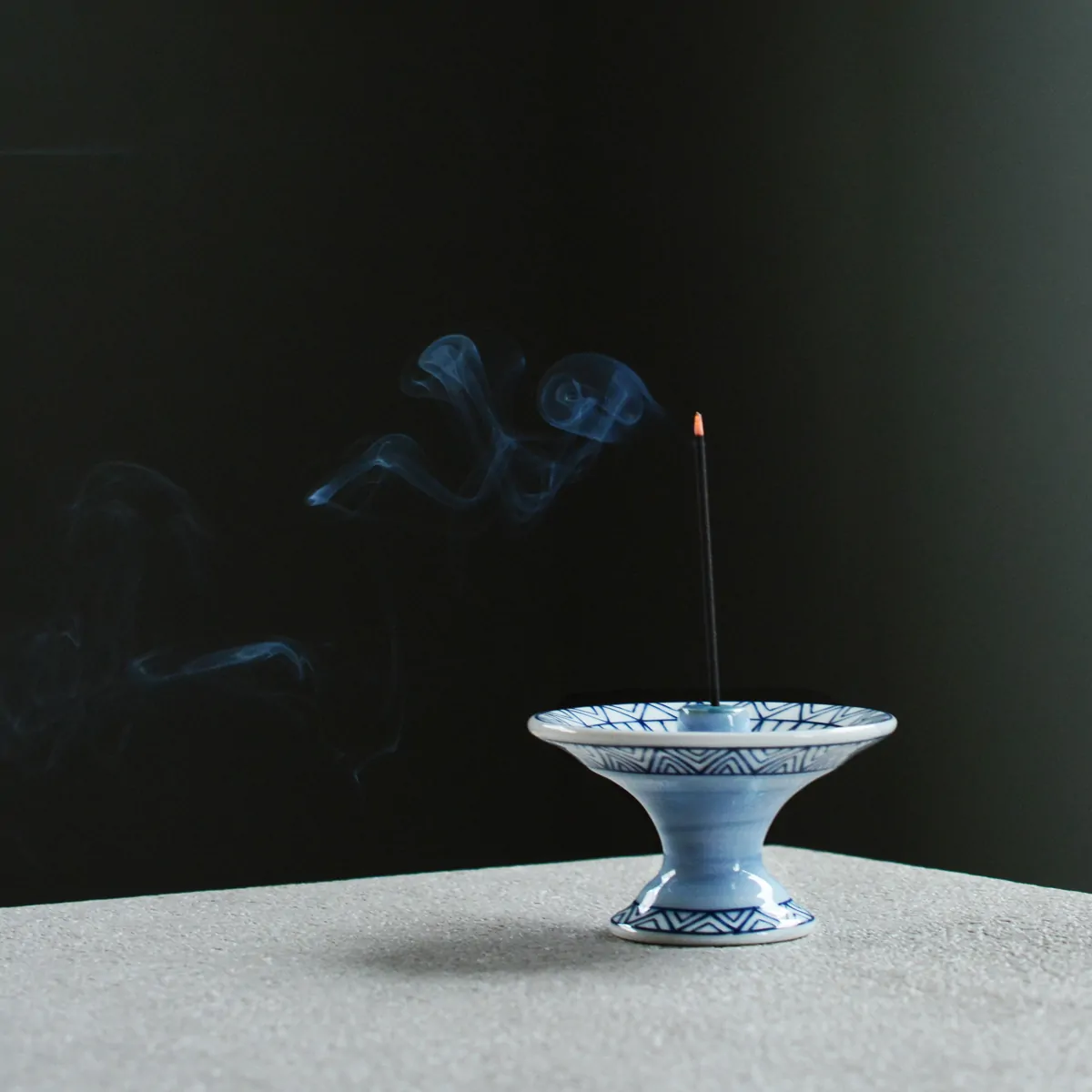 Blue and white porcelain incense holder blending contemporary elegance with a touch of timeless tradition.