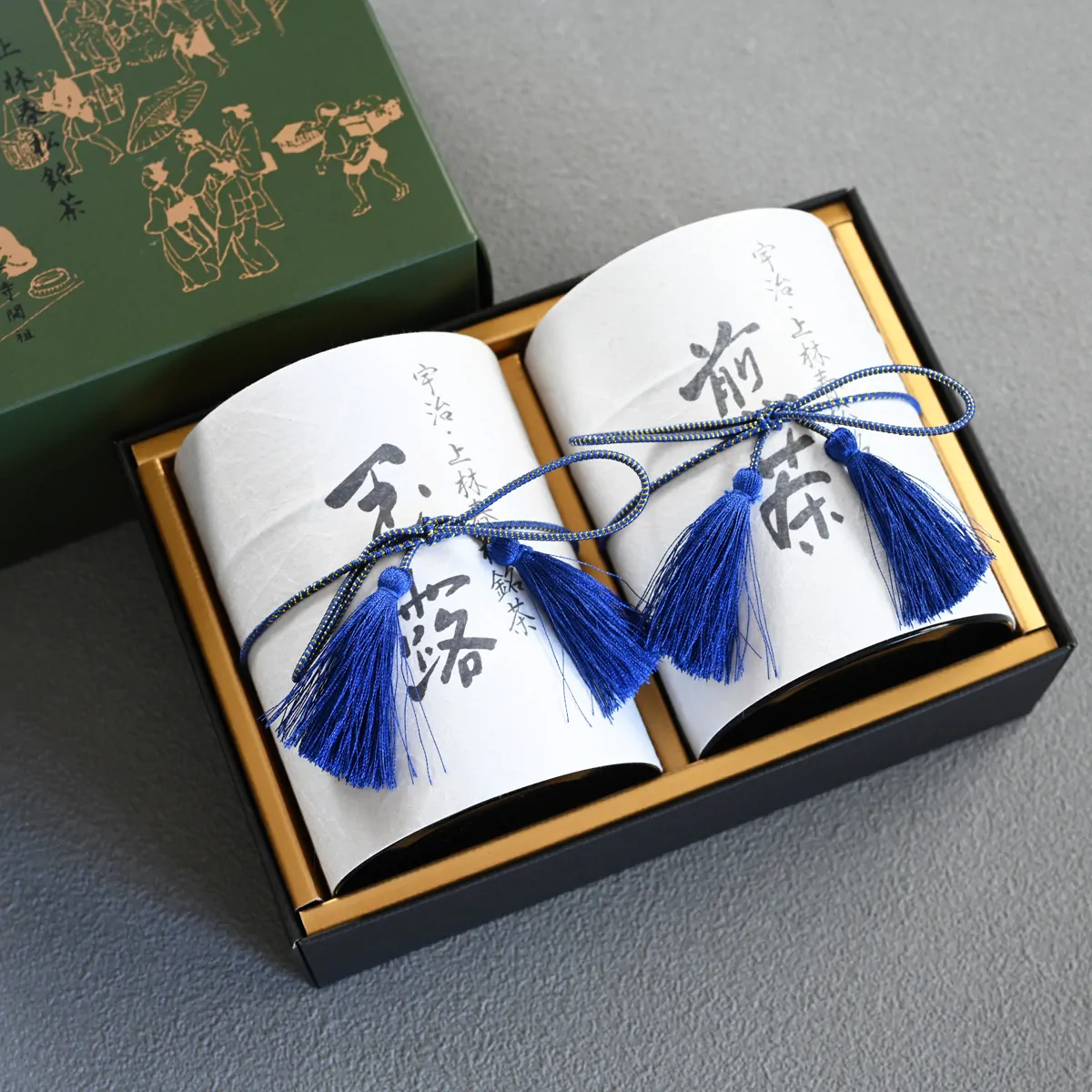 An elegant and exquisite gift set including Gyokuro Gyokuheki and Sencha Kisen in stylish tea caddies.