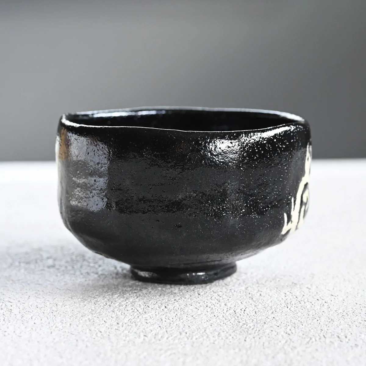 Black raku matcha tea bowl from the Shōraku Kiln