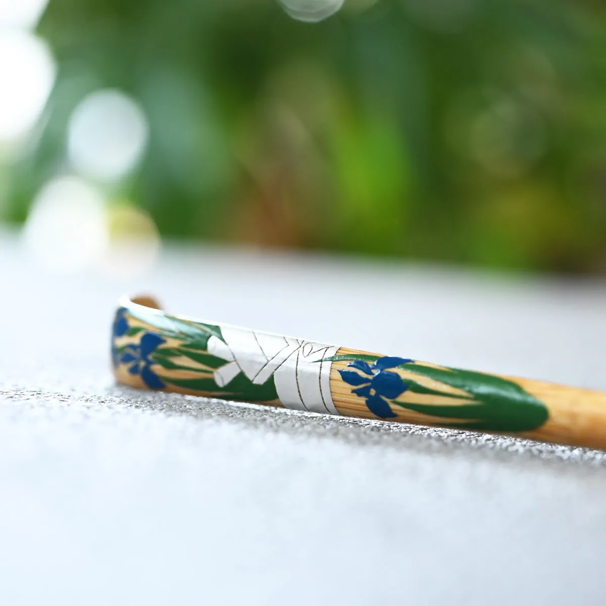 Hand-painted chashaku made of bamboo.
