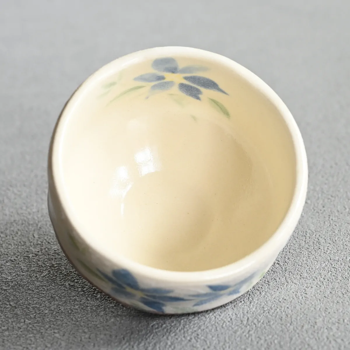 Small size matcha tea bowl decorated with clematis blossom