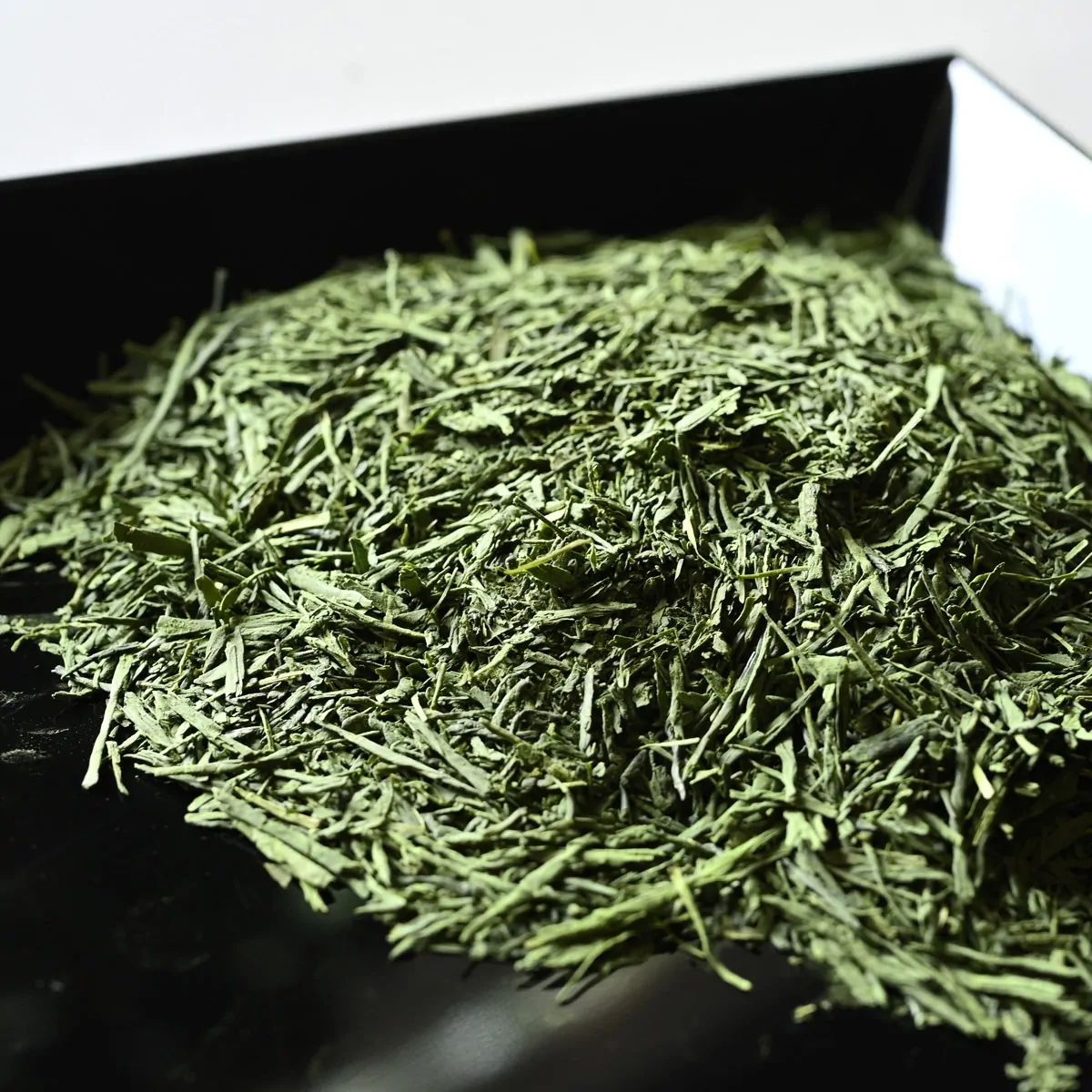 Partially shaded green tea from the Uji tea fields blended with ceremonial-grade Uji matcha.