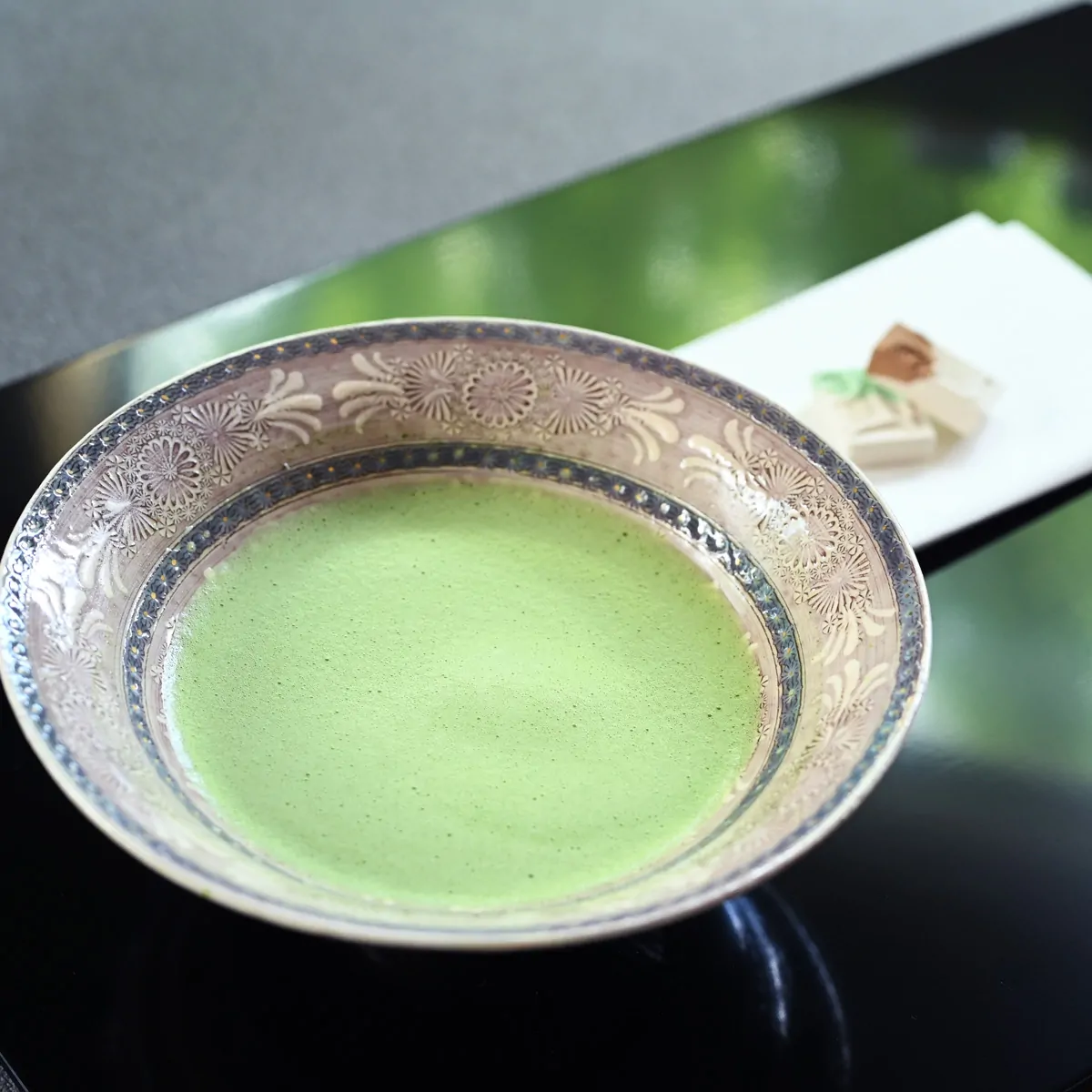 Handmade matcha tea bowl from Hideo Morisato, Tōraku kiln