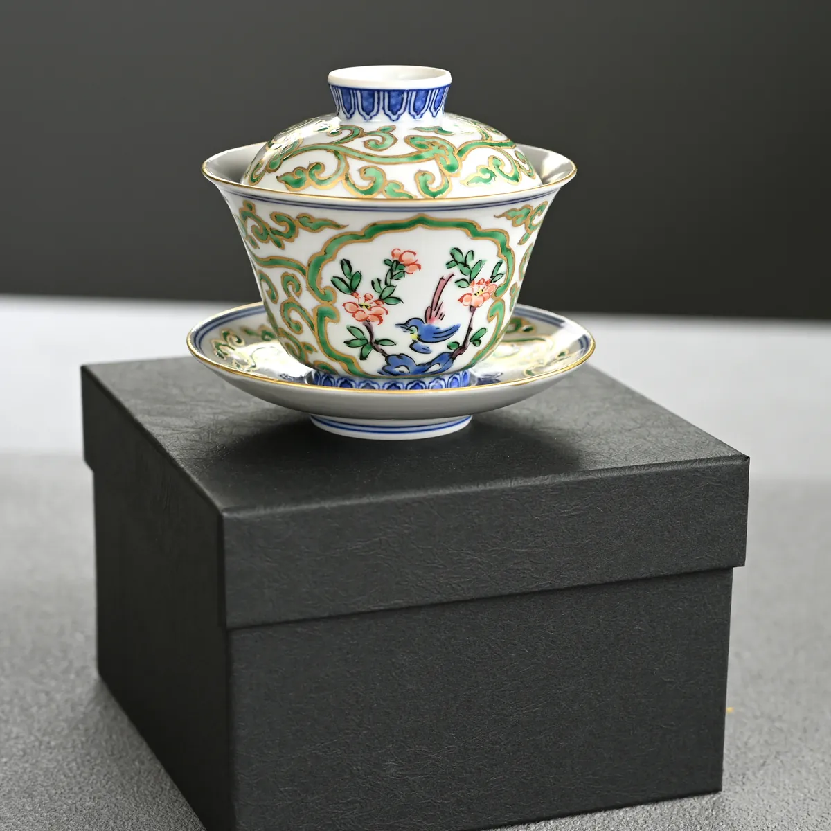 Handmade and hand-painted porcelain gaiwan made by Katō Seishō, a renowned ceramic artist based in Kyoto.