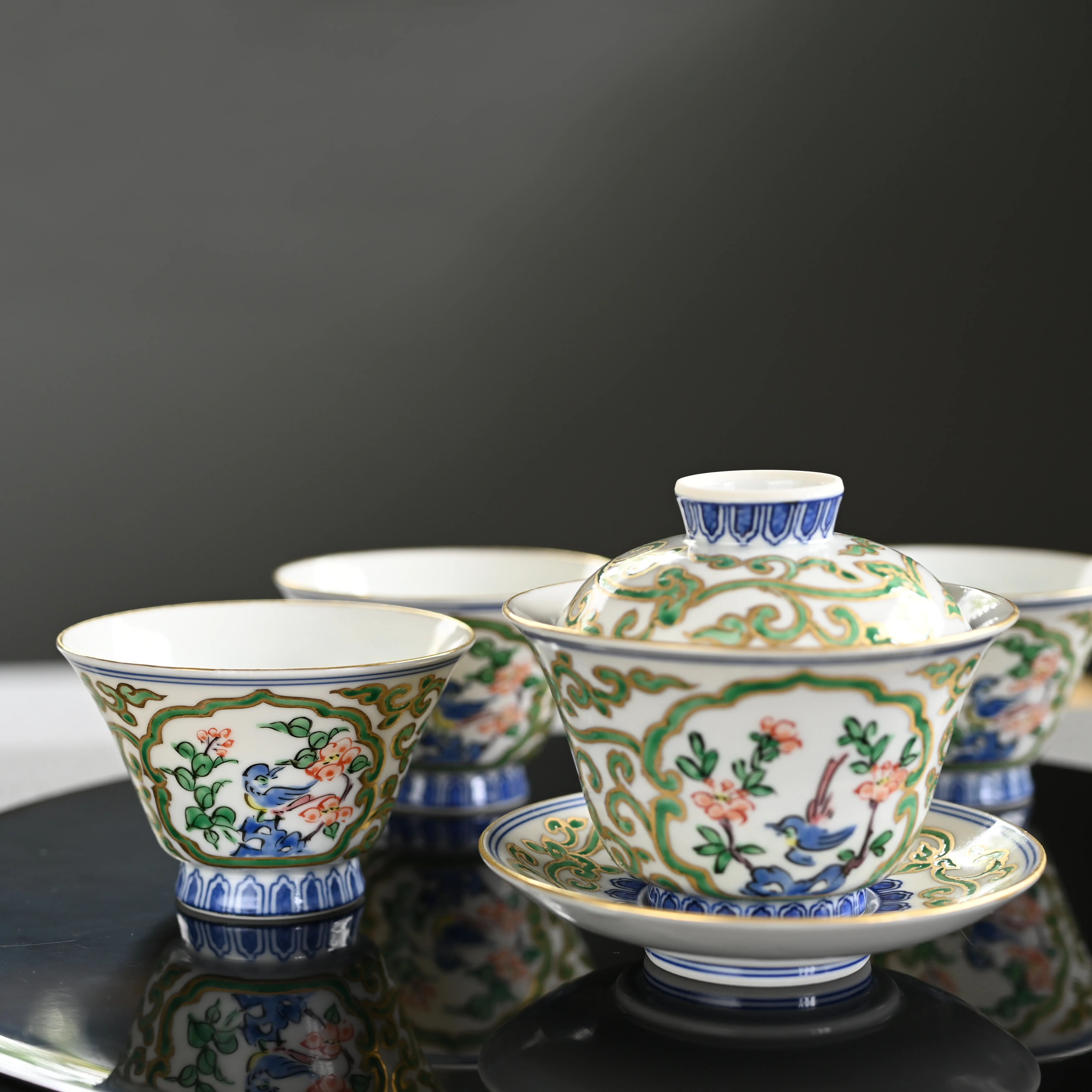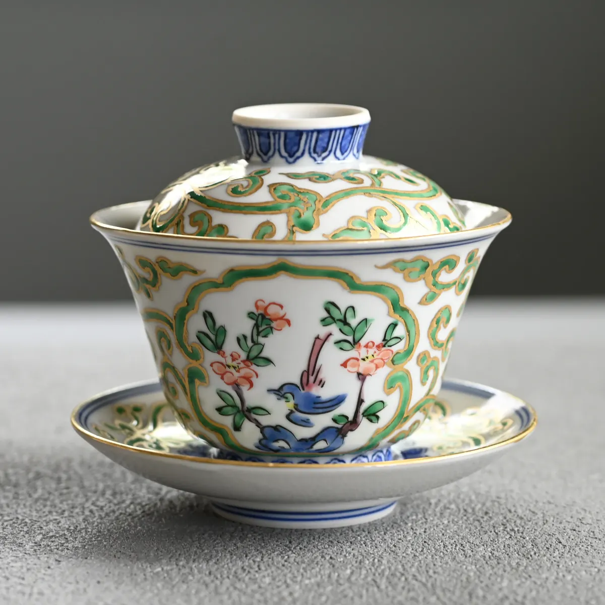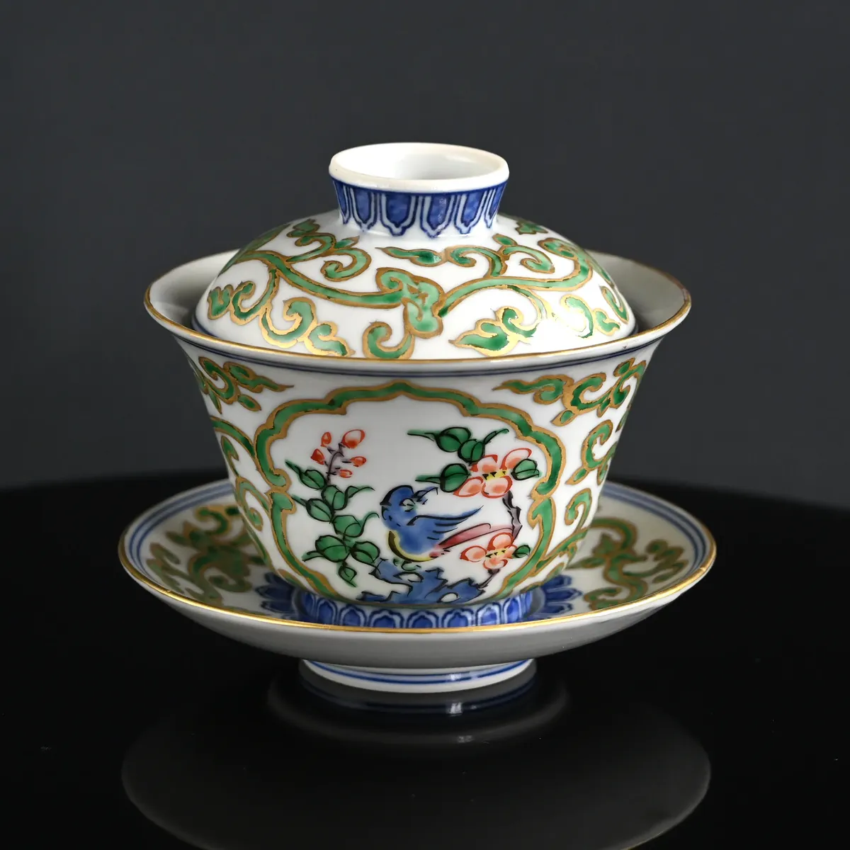 Handmade and hand-painted, porcelain gaiwan from Katō Seishō