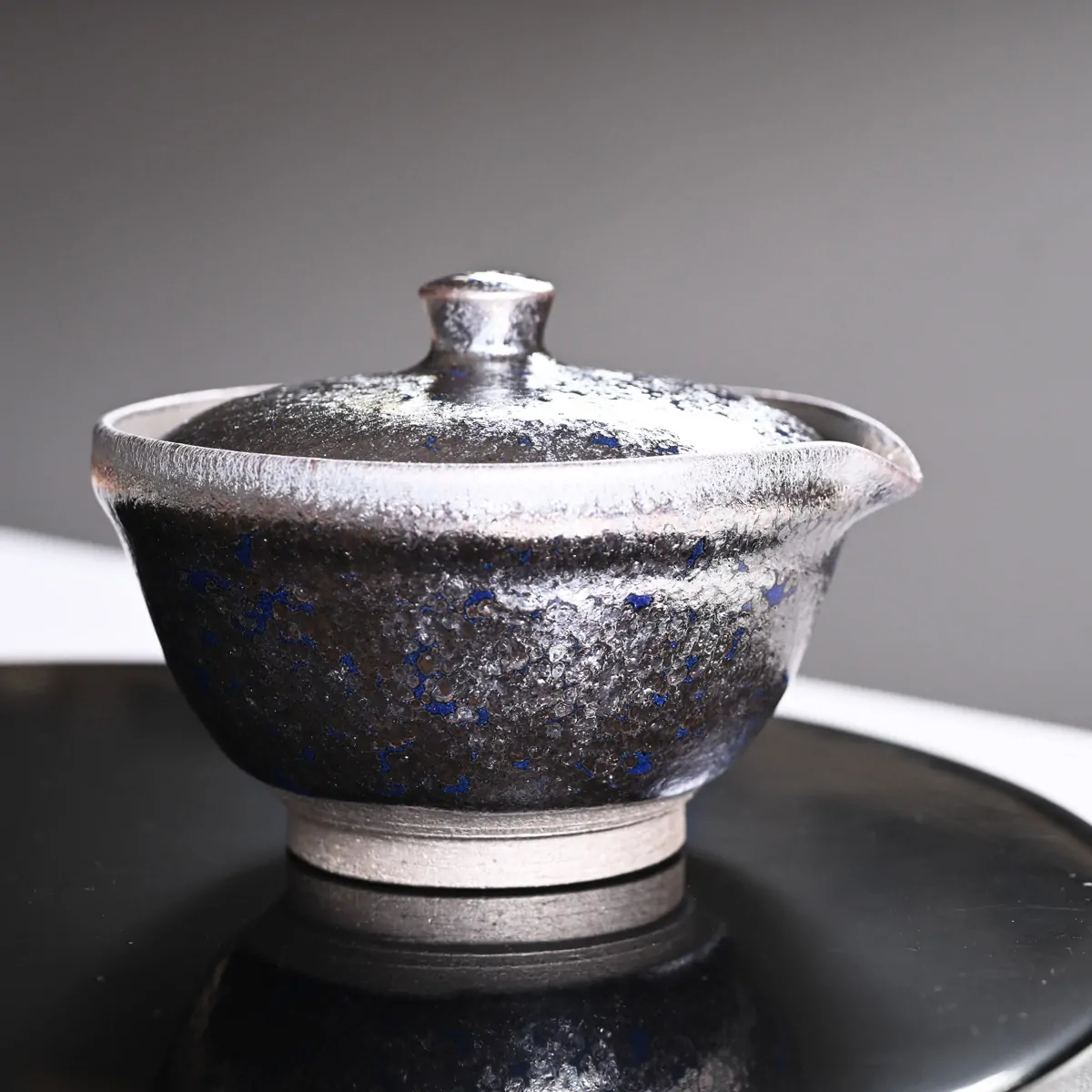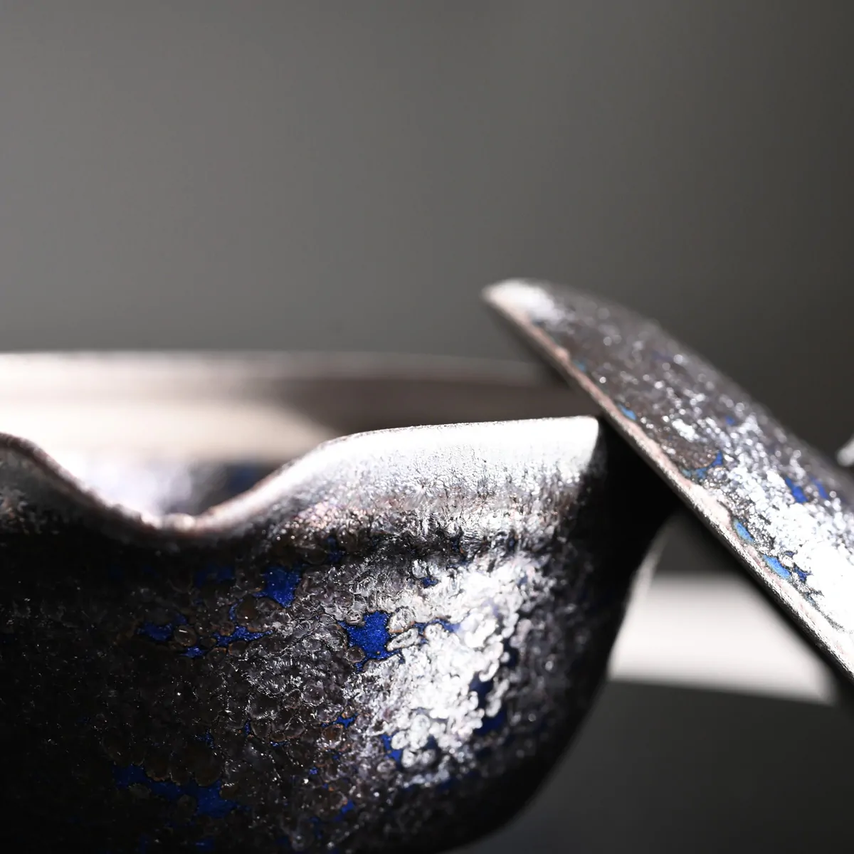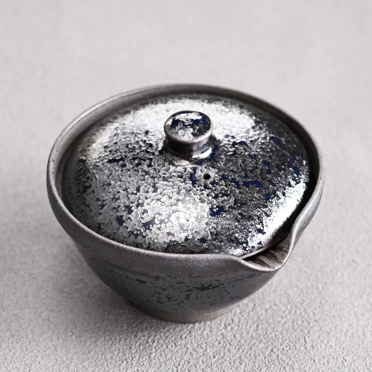 Teapot with a silvery-blue oil-drop glaze from Izutsu Toshihiko