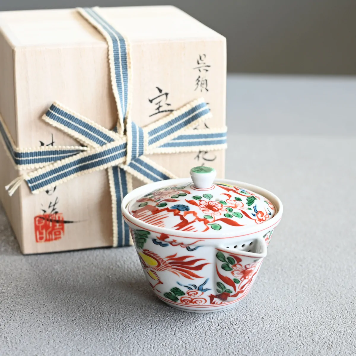 The teapot comes in a paulownia wood box signed by the artist.