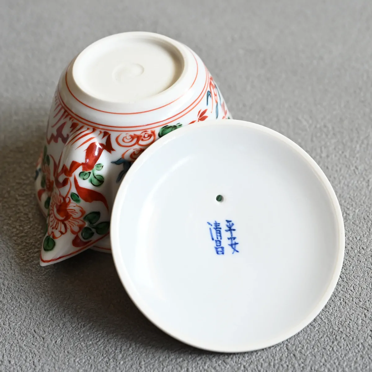 Handmade and hand-painted porcelain teapot made by Katō Seishō, a renowned ceramic artist based in Kyoto.