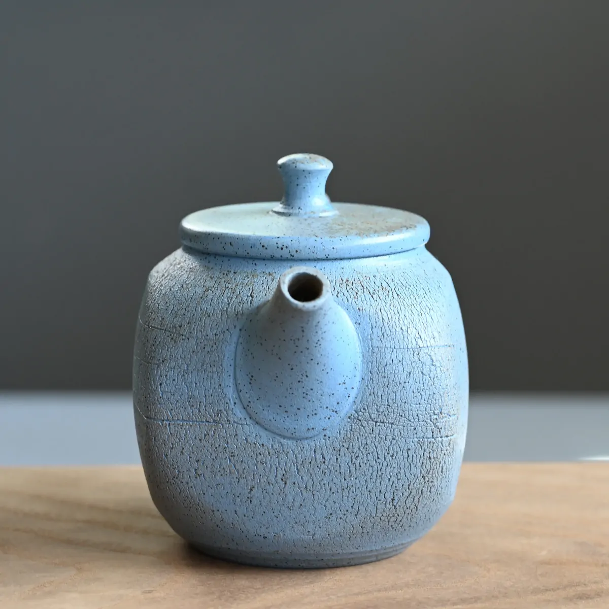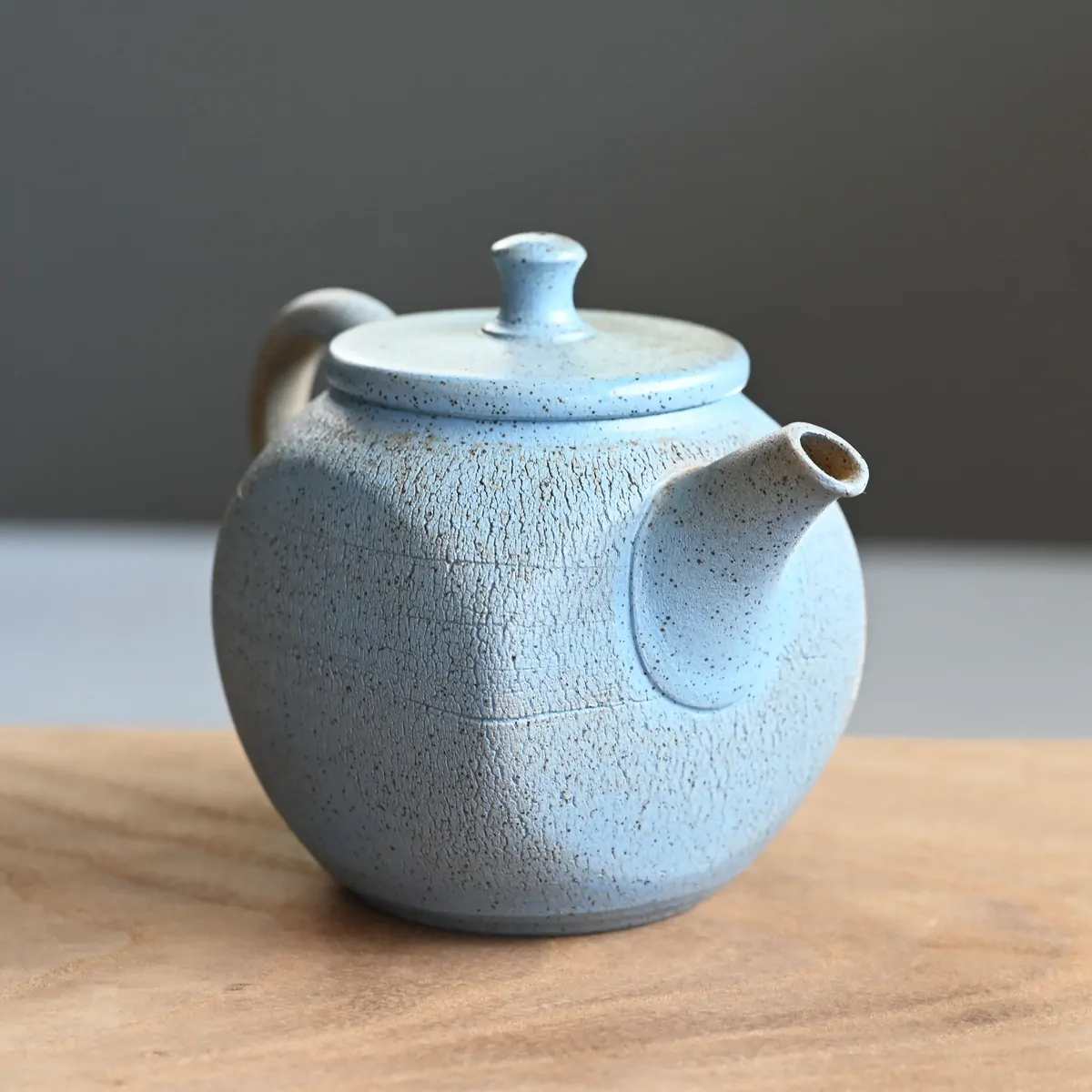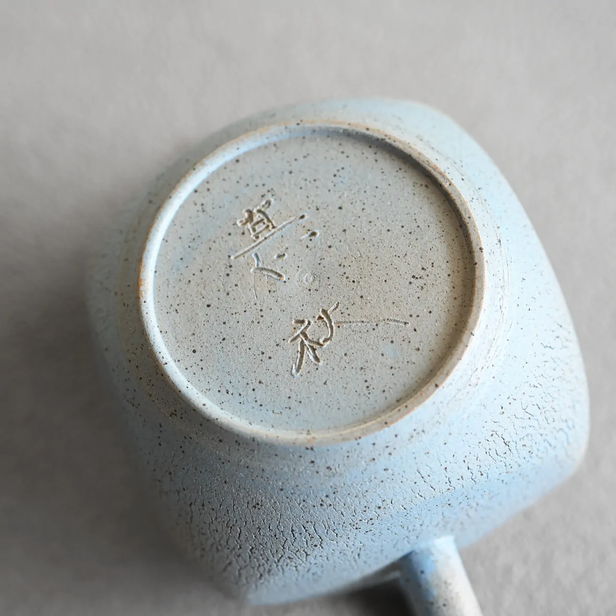 Stylish and unique back-handled teapot from the renowned ceramic artist, Itō Seiji. The sky-blue glaze is his specialty, and it stands between the usual ceramic glaze and engobe in viscosity.