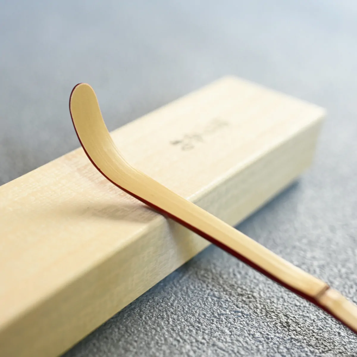 After use, a small amount of matcha powder may stick to the scoop. To clean it, use a dry cloth whenever possible—bamboo is extremely sensitive to moisture. If the powder is stubborn, you may wipe the scoop with a slightly damp cloth or tissue, but be sure to dry it thoroughly afterward. Avoid scrubbing, as this can damage the lacquer finish.
