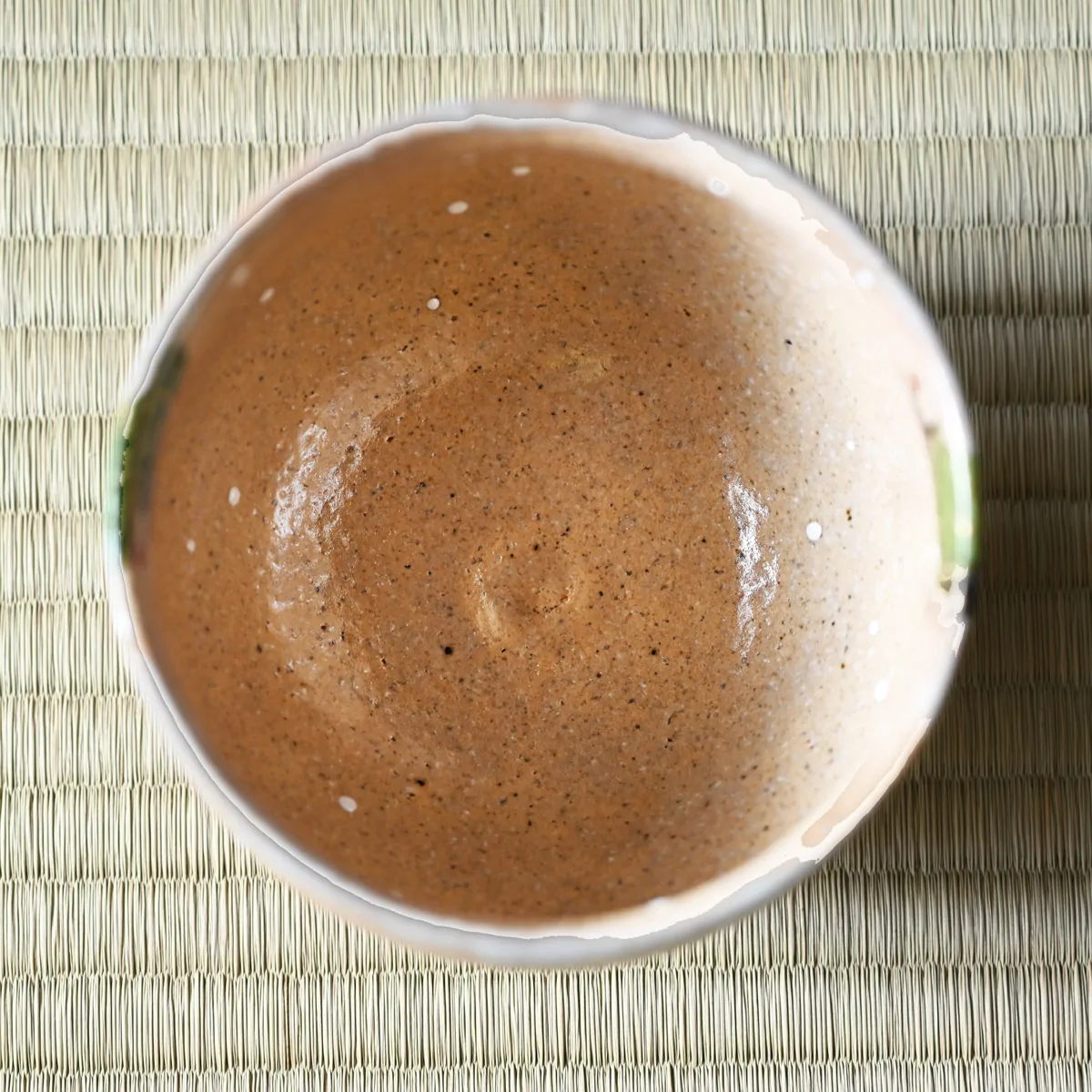 Initiate the tea bowl first! Let the bowl sit wholly immersed in cold or lukewarm water for a couple of minutes and then let it dry naturally. Matcha patina is natural for clay, but by initiating the bowl properly, it will develop slower.