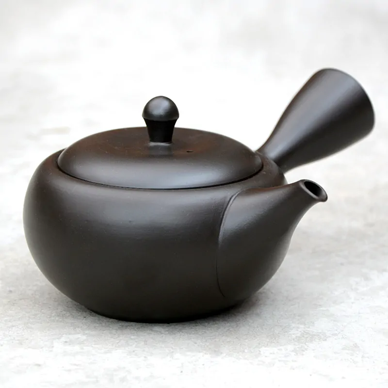 Precise and stylish unglazed teapot fired in a reduction chamber that gives the surface this dark matte finish. Ideal for Japanese green tea.