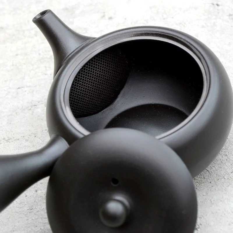 Precise and stylish unglazed teapot fired in reduction chamber that gives the surface this dark matte finish. Ideal for Japanese green tea.