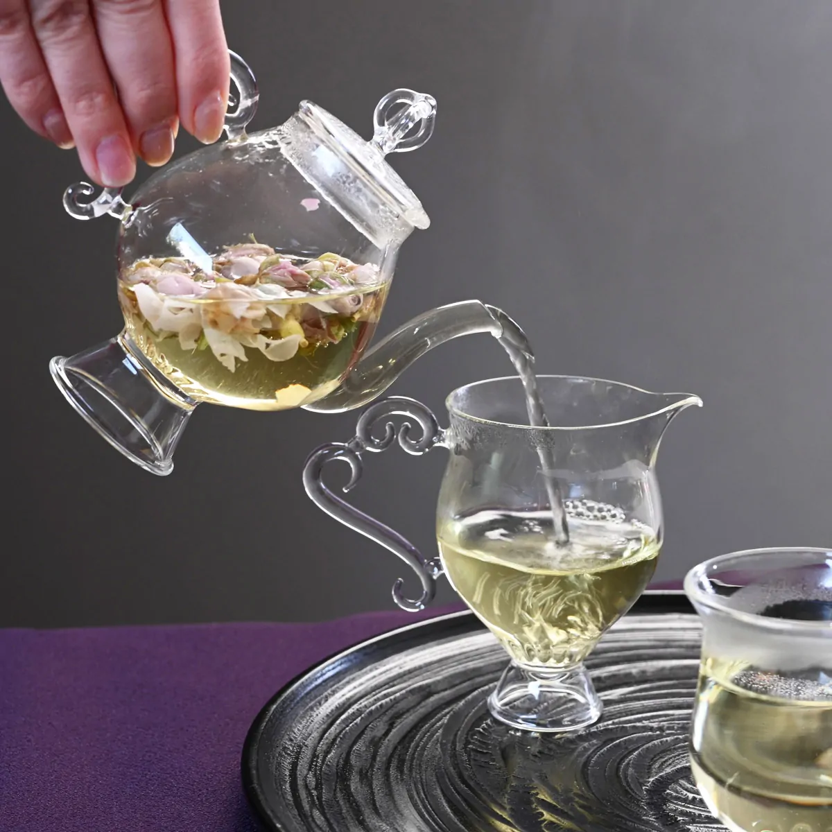 1. Put 3-4 tea flowers into a glass teapot.
